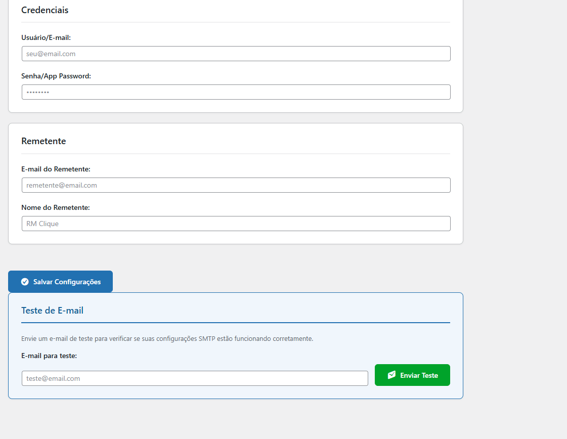 Pare de perder vendas e leads porque seus e-mails caíram na pasta de spam. O SMTP RM Clique é a solução definitiva para configurar o envio de e-mails do seu WordPress de forma profissional, segura e com 100% de entregabilidade.